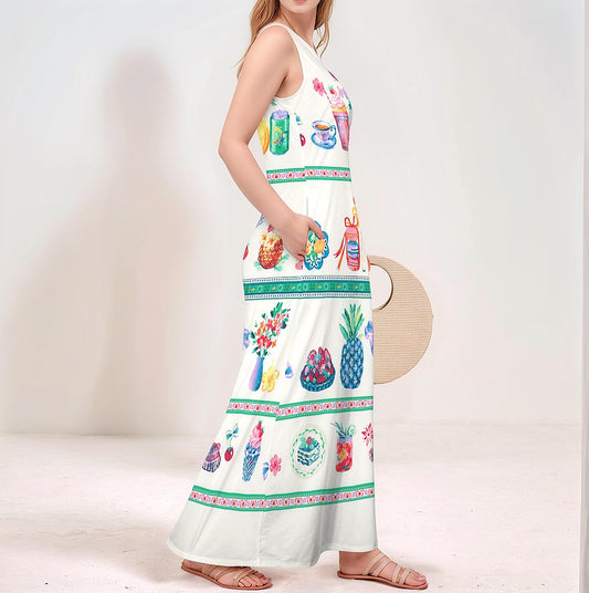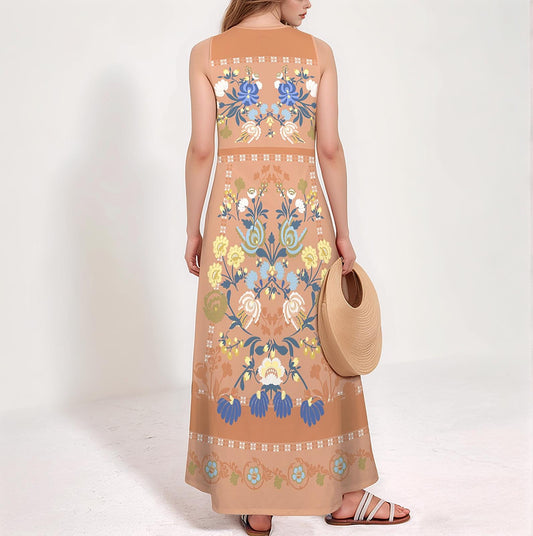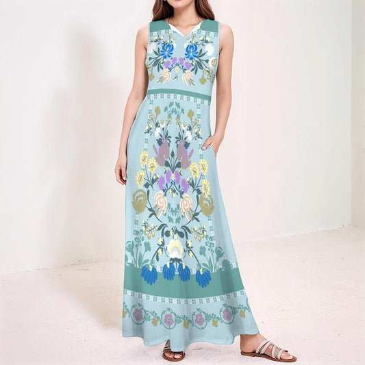 Womens Floral Half Sleeve V Neck Maxi Dress