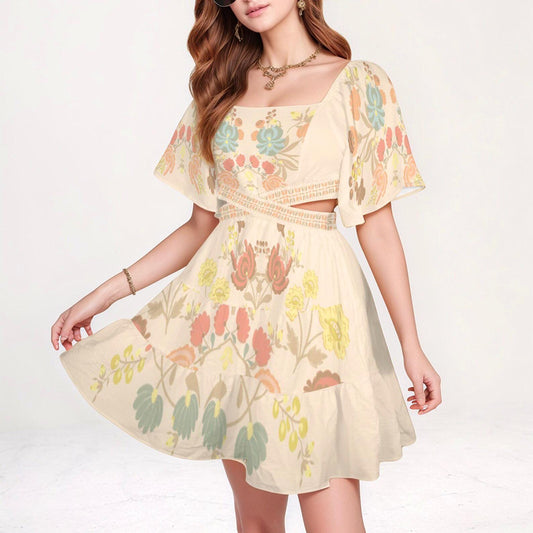 Women's Floral V-Neck Button Down Half Sleeve Shirt Dress